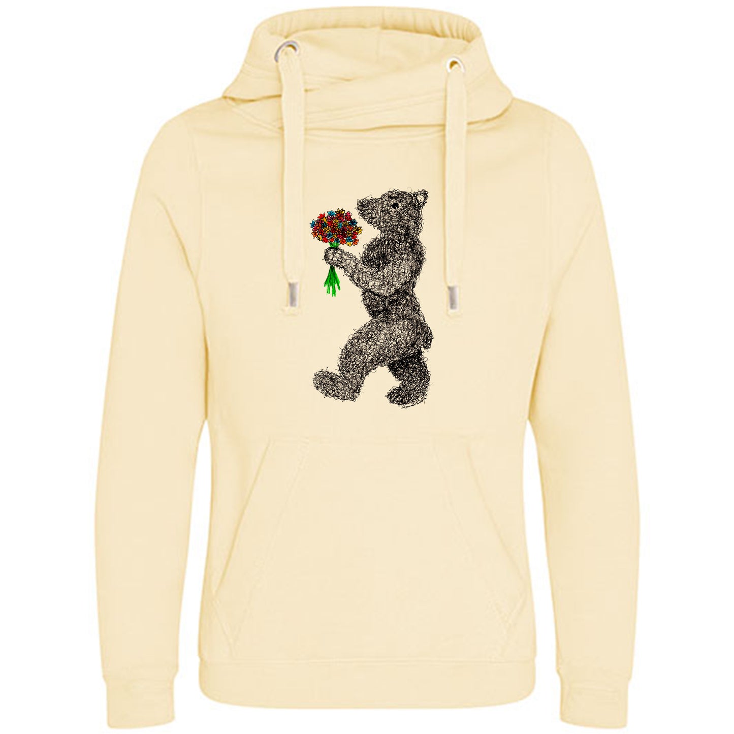 Cross Neck Hoodie/ Pulli / Motiv: Blumenbär gezeichnet