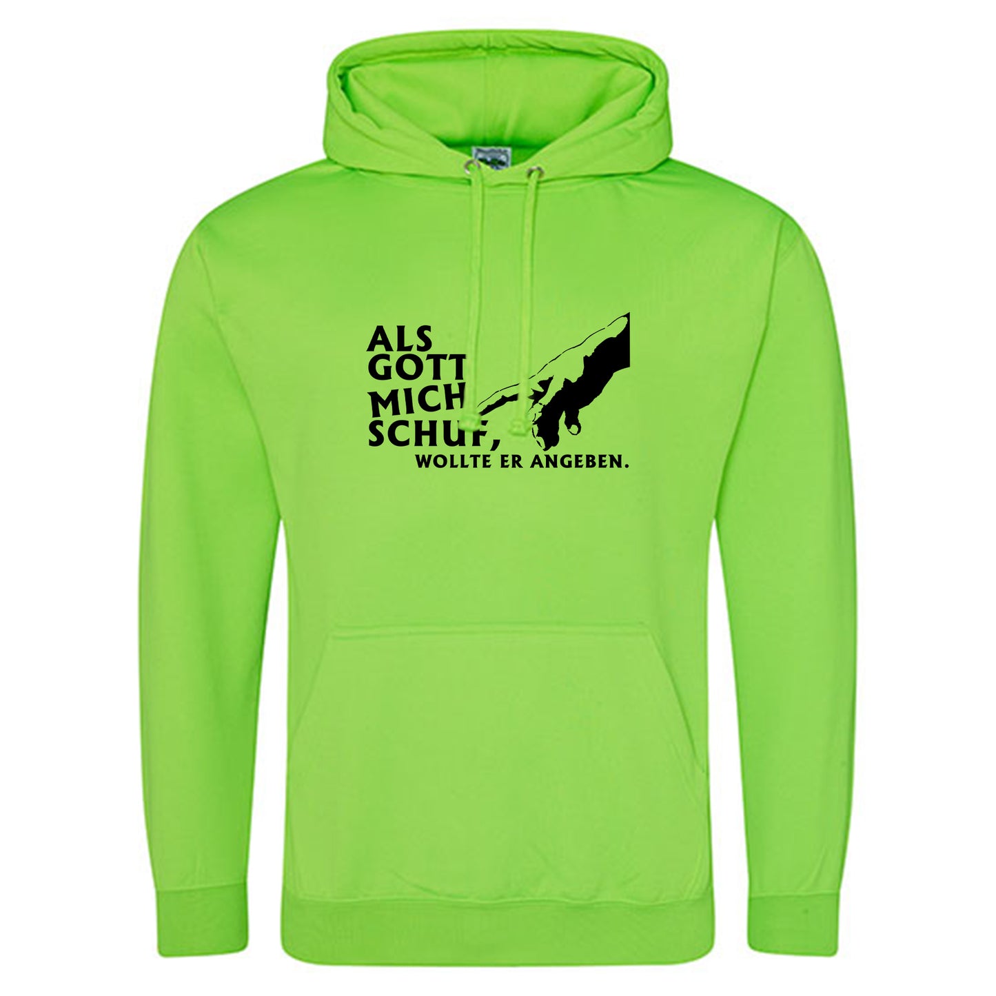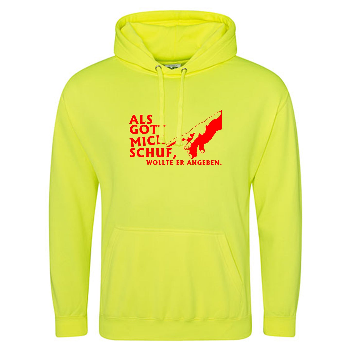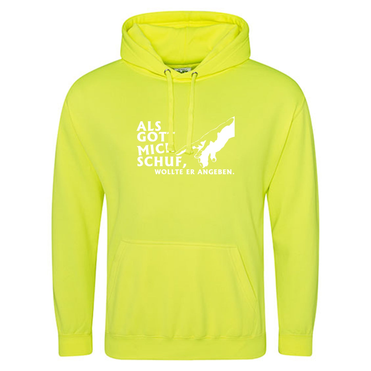 Electric Hoodie / Neon Kapuzenpulli / Motiv: Als Gott mich schuf, wollte er angeben.