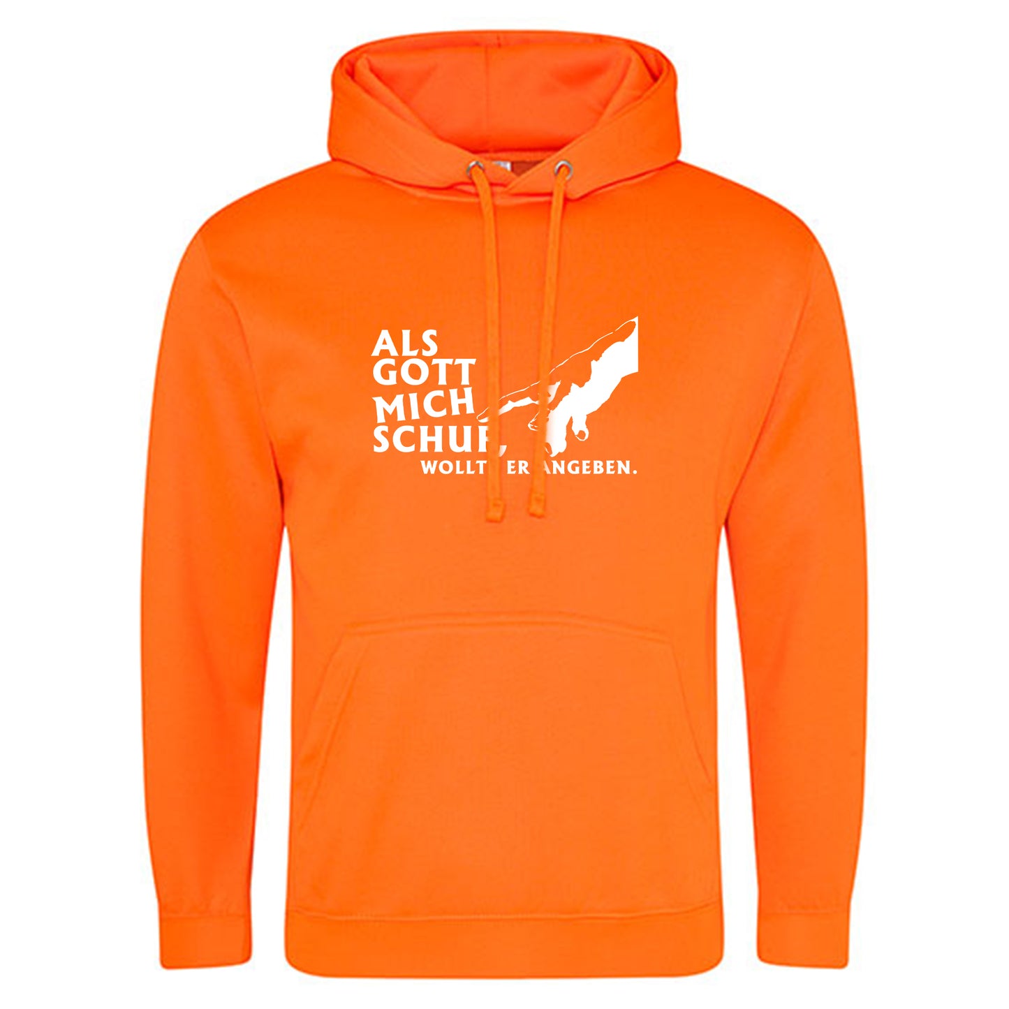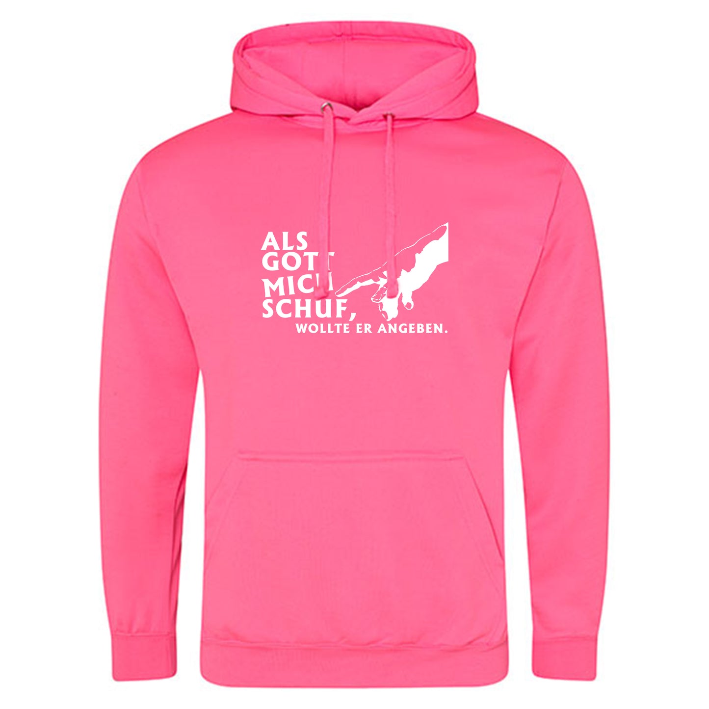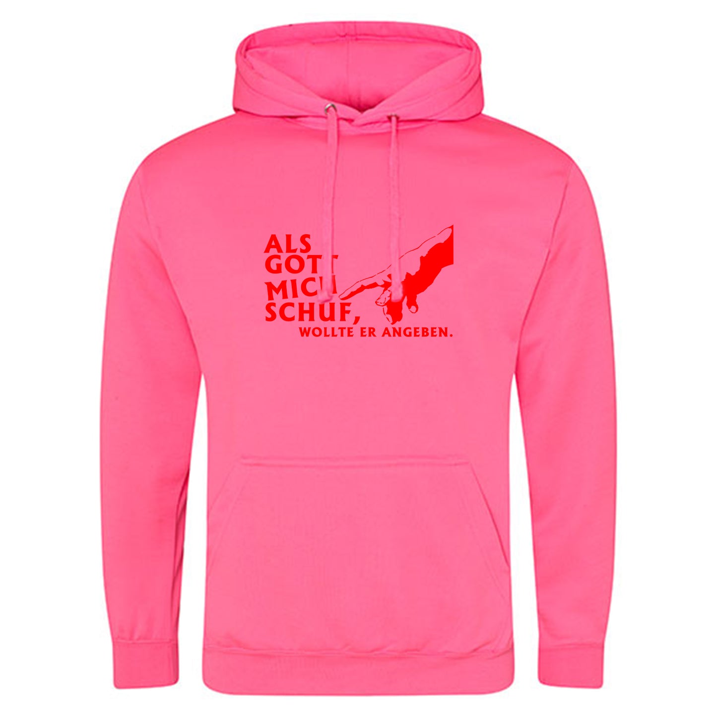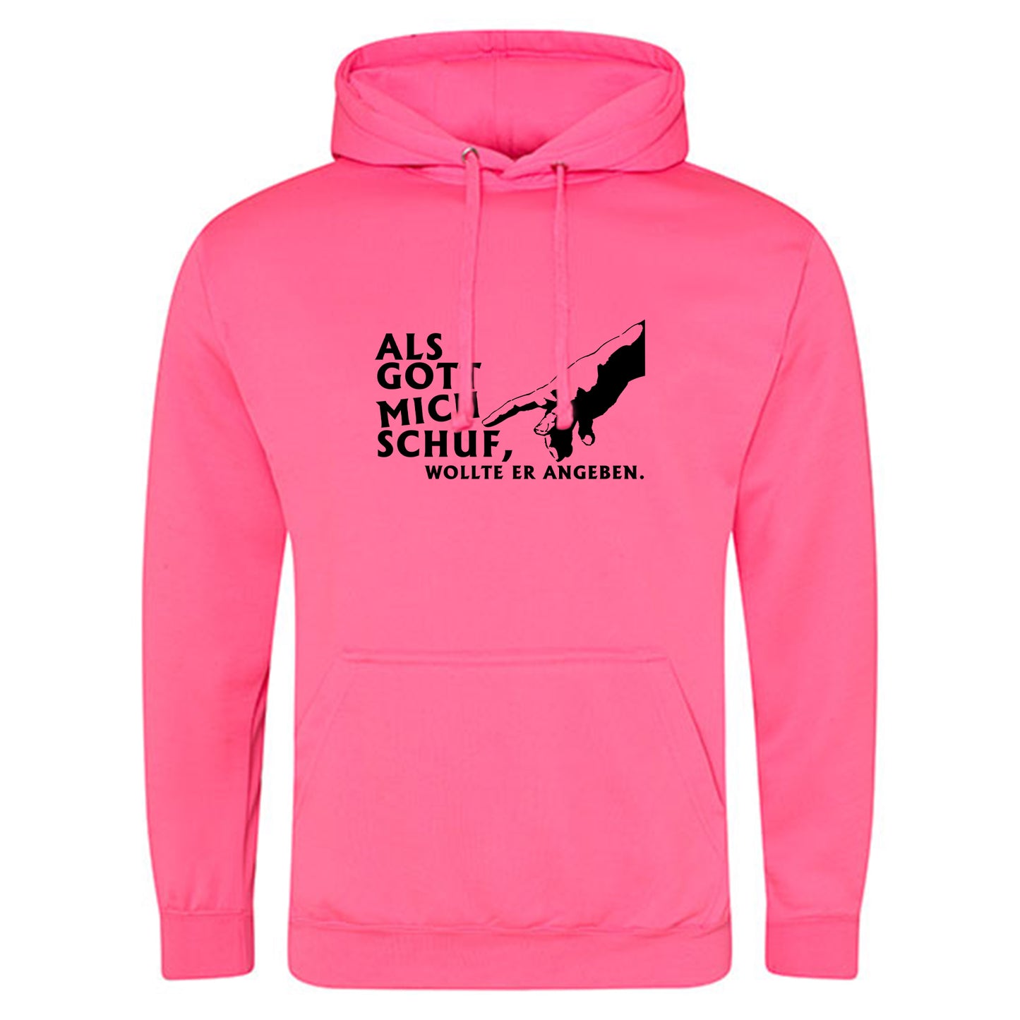 Electric Hoodie / Neon Kapuzenpulli / Motiv: Als Gott mich schuf, wollte er angeben.