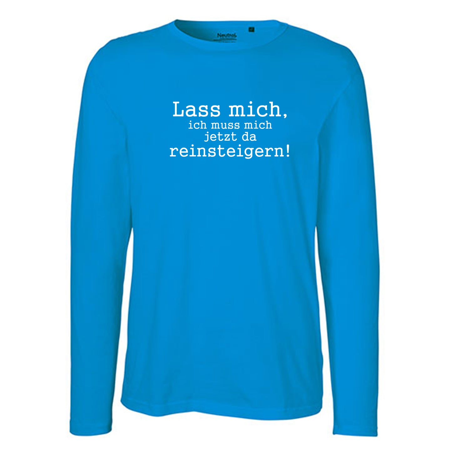 Herren FairTrade Longsleeve Shirt | Motiv "Lass mich, ich muss mich jetzt da reisteigern!" | 100% Bio-Baumwolle und aus nachhaltiger Produktion