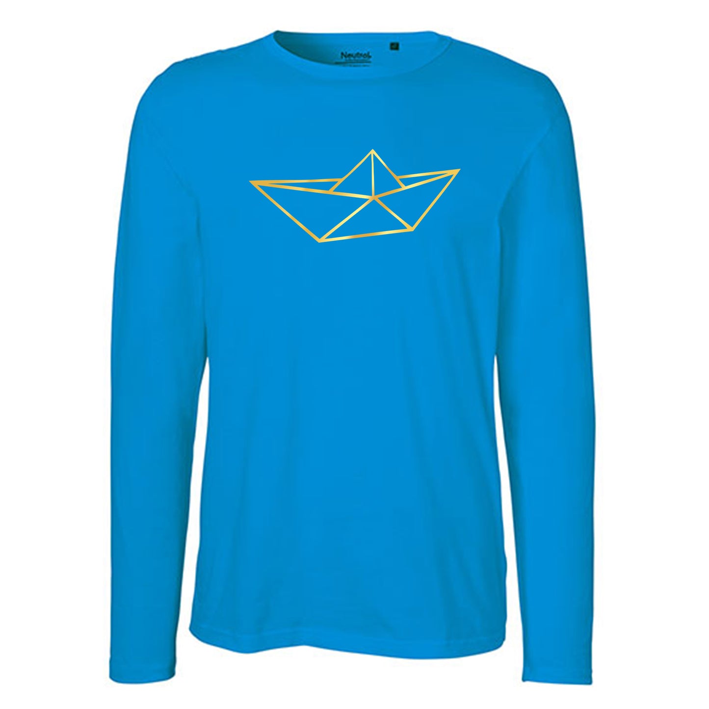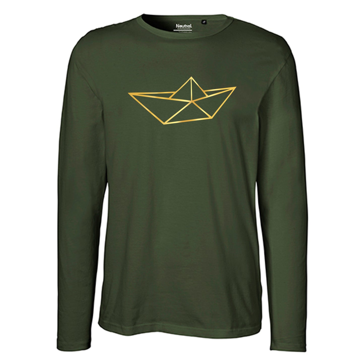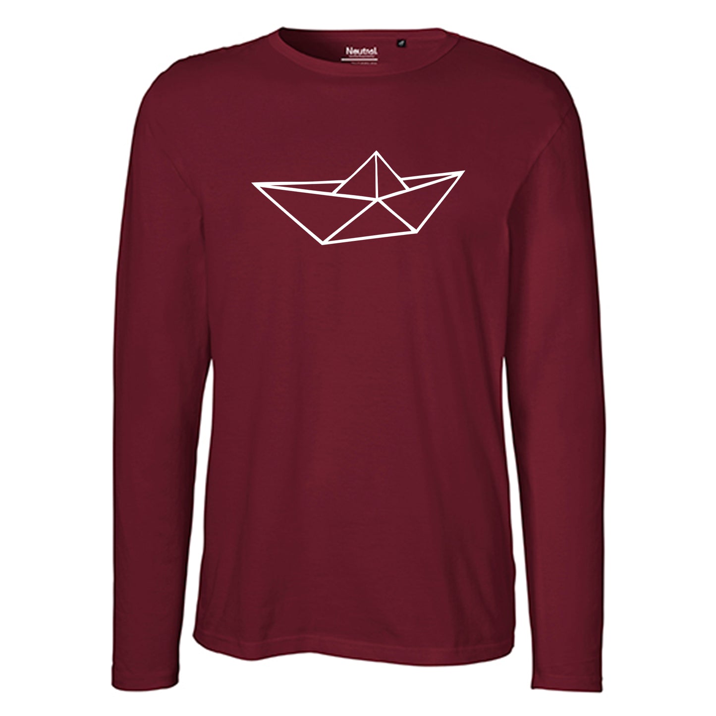 Herren FairTrade Longsleeve Shirt | Motiv "Schiff origami" | 100% Bio-Baumwolle und aus nachhaltiger Produktion | Größen S-3XL