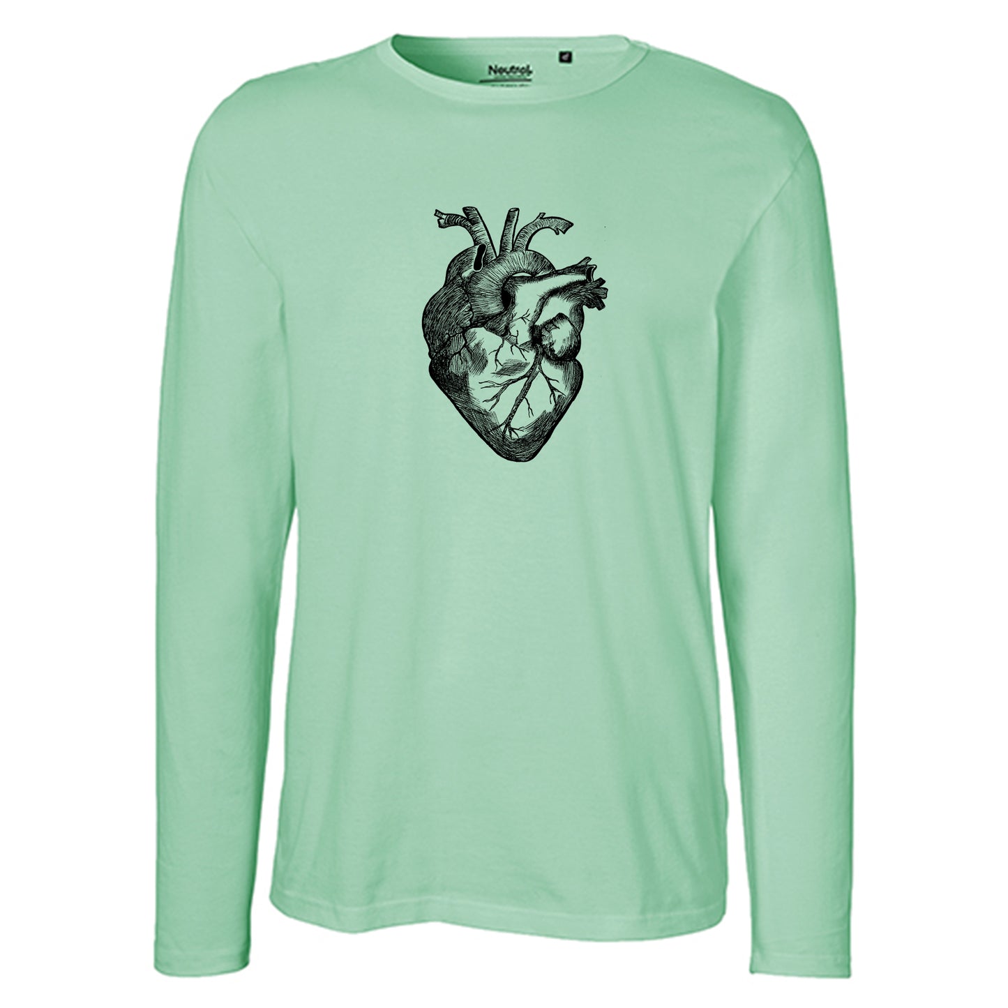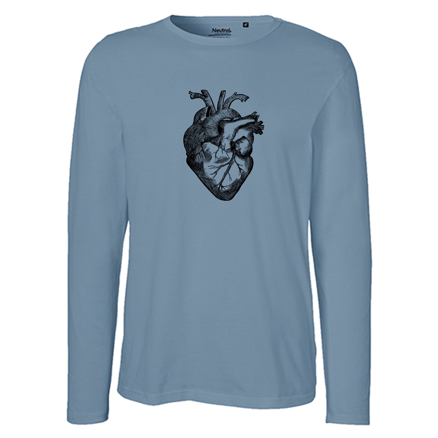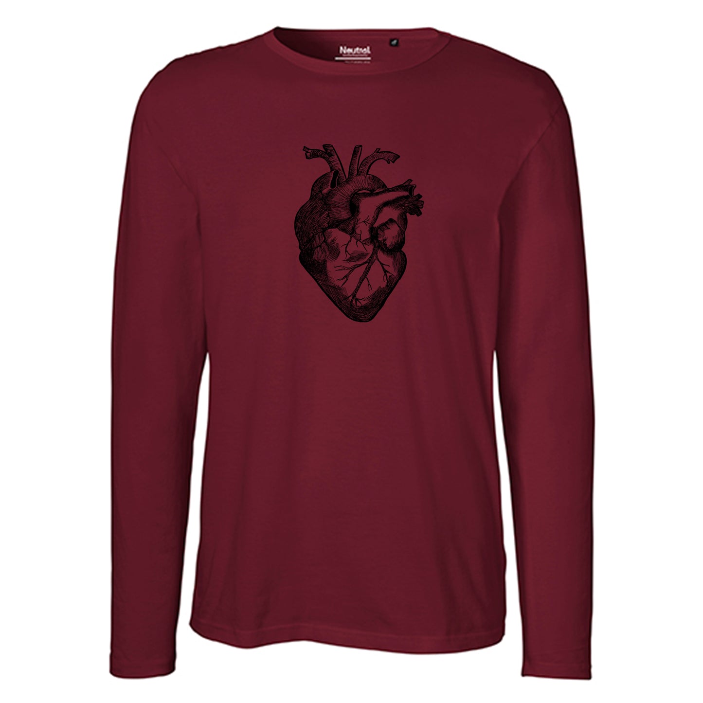 Herren FairTrade Longsleeve Shirt | Motiv"Herz anatomisch - gezeichnet" | 100% Bio-Baumwolle und aus nachhaltiger Produktion | Größen S-3XL