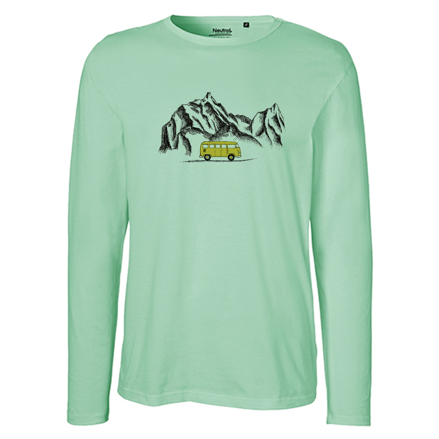 Herren FairTrade Longsleeve Shirt | Motiv"Berg Camper - gezeichnet" | 100% Bio-Baumwolle und aus nachhaltiger Produktion | Größen S-3XL