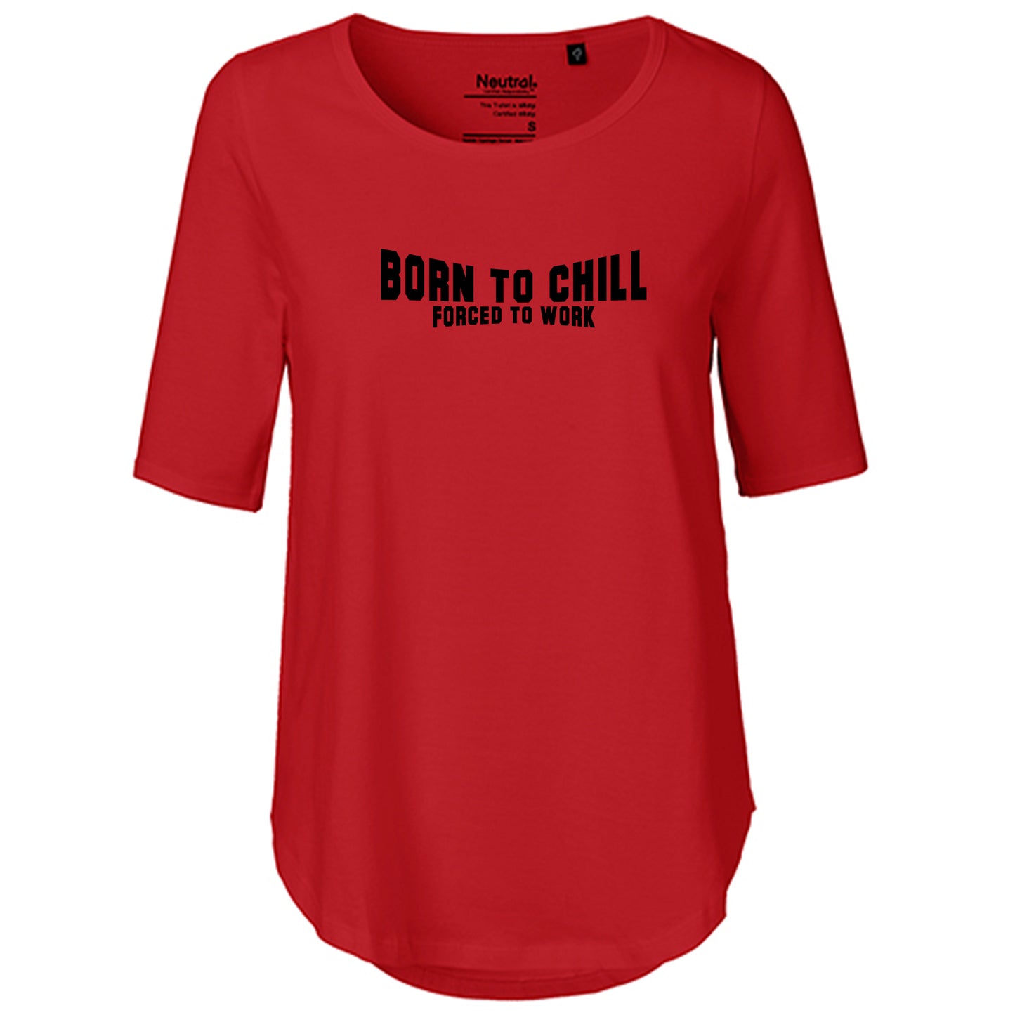 T-Shirt Damen FairTrade Oversized Half Sleeve "Born to chill Forced to work"