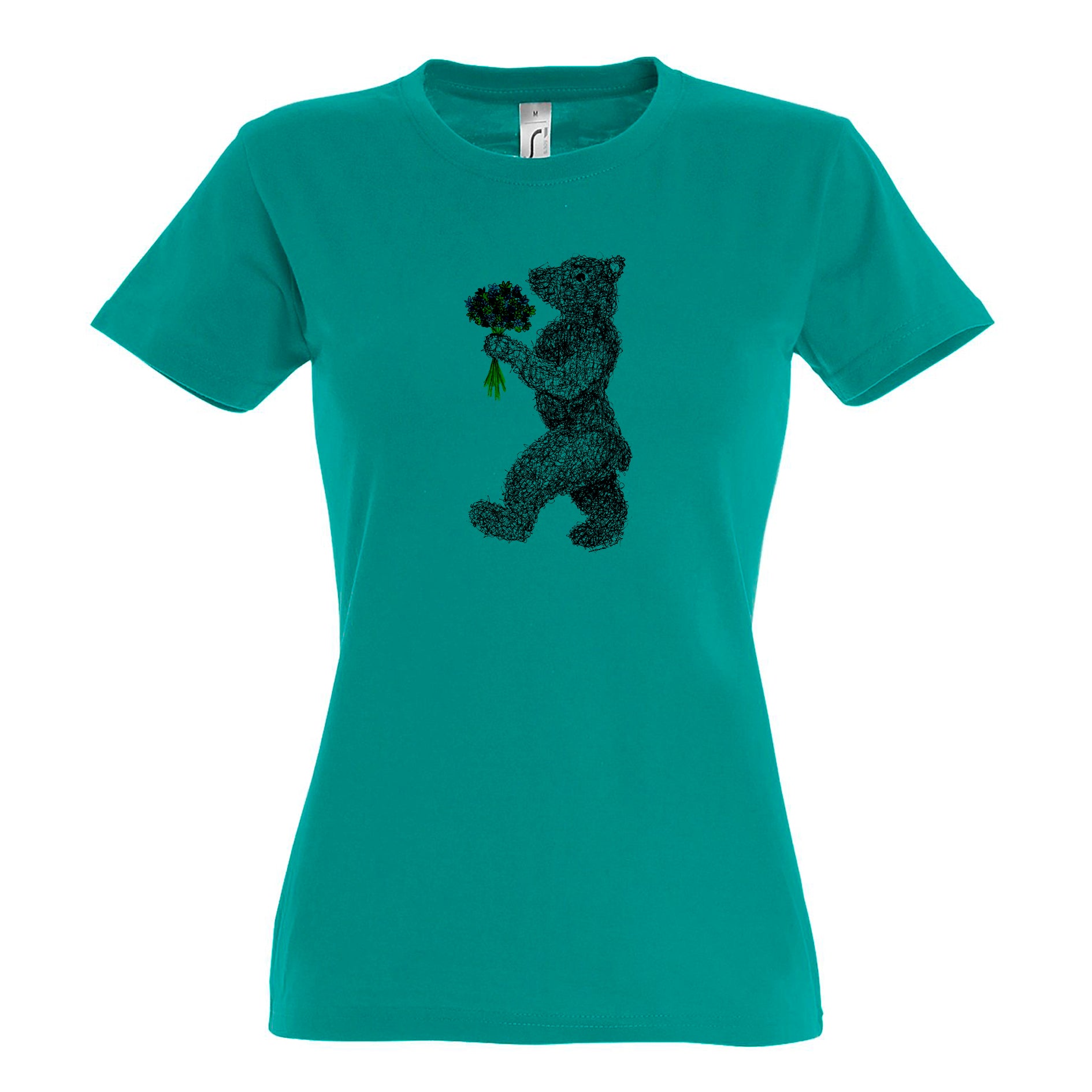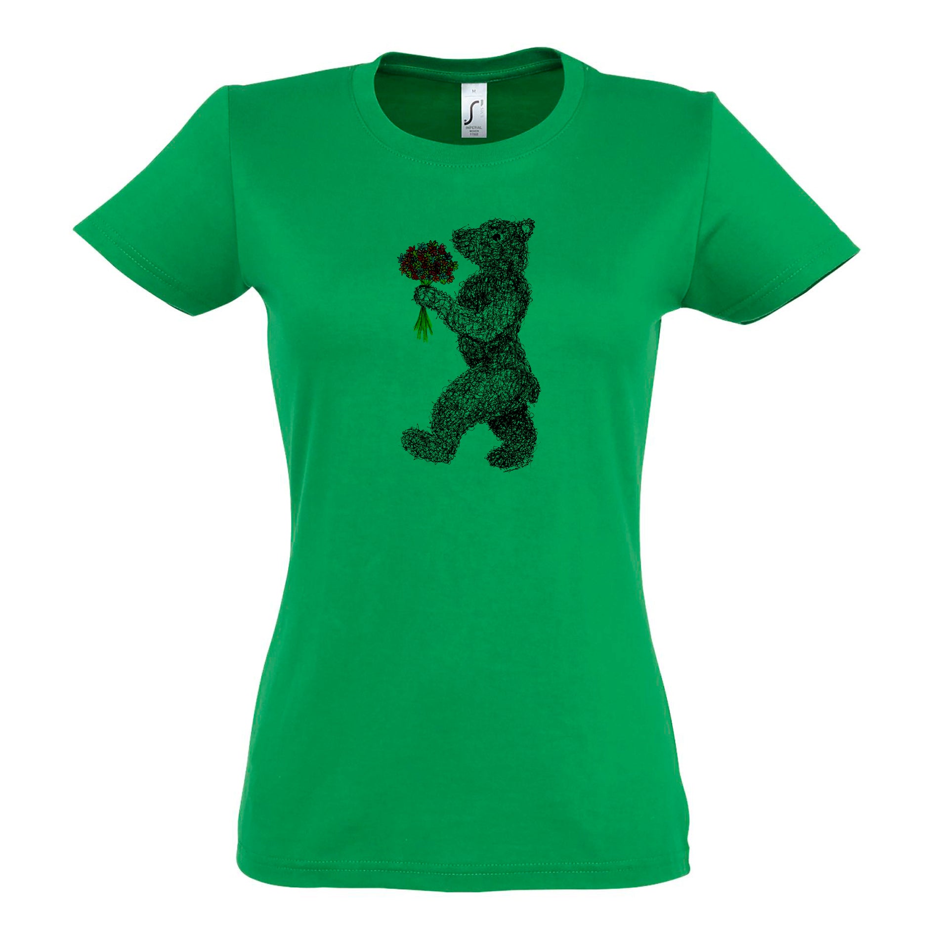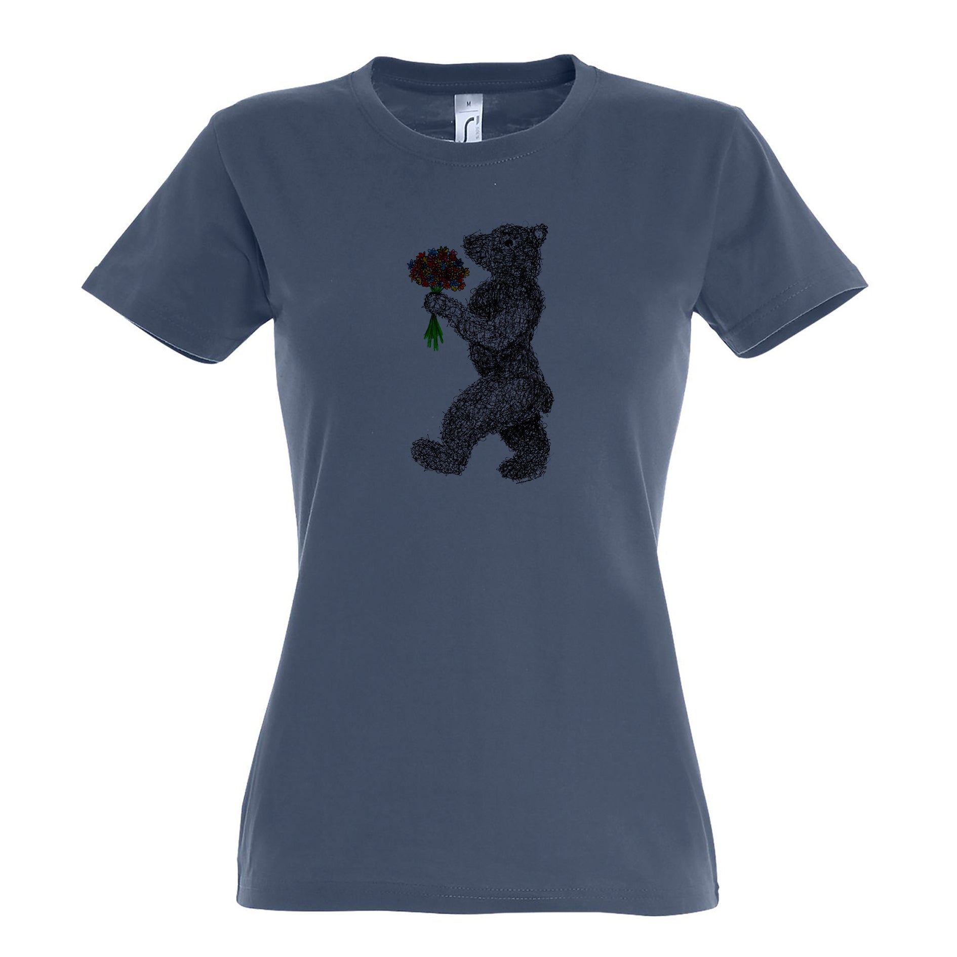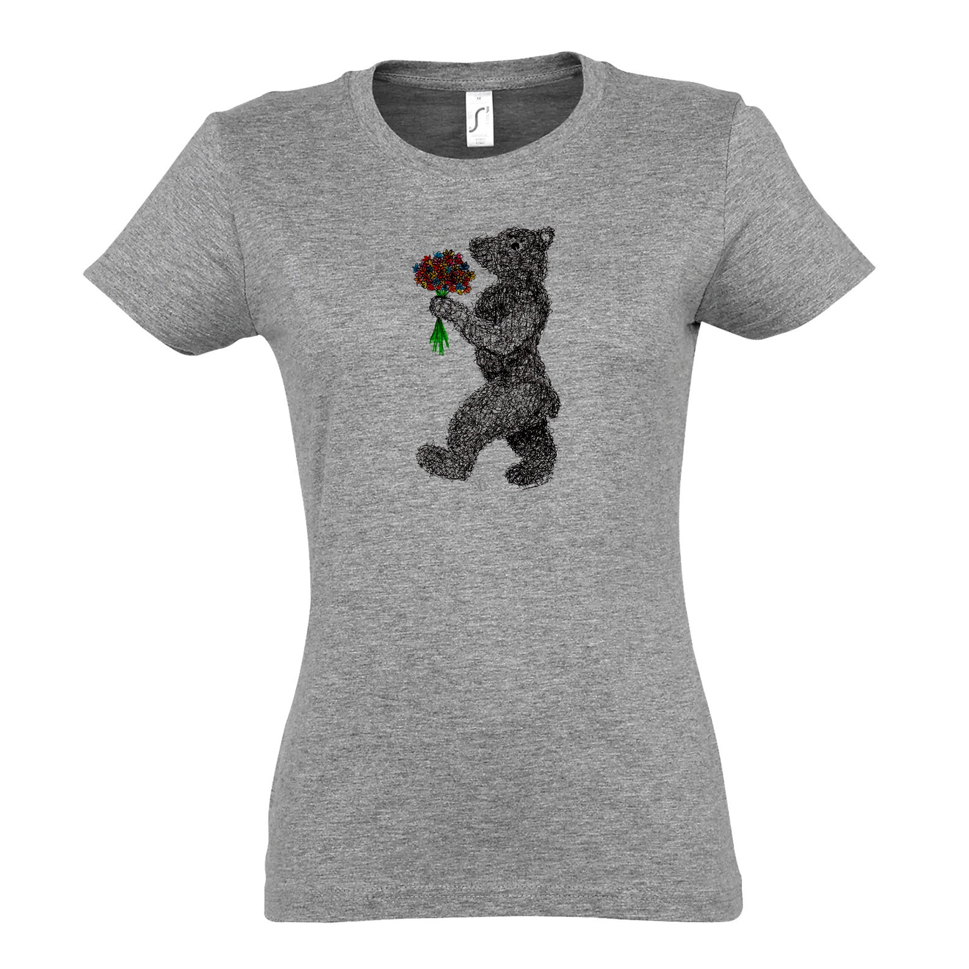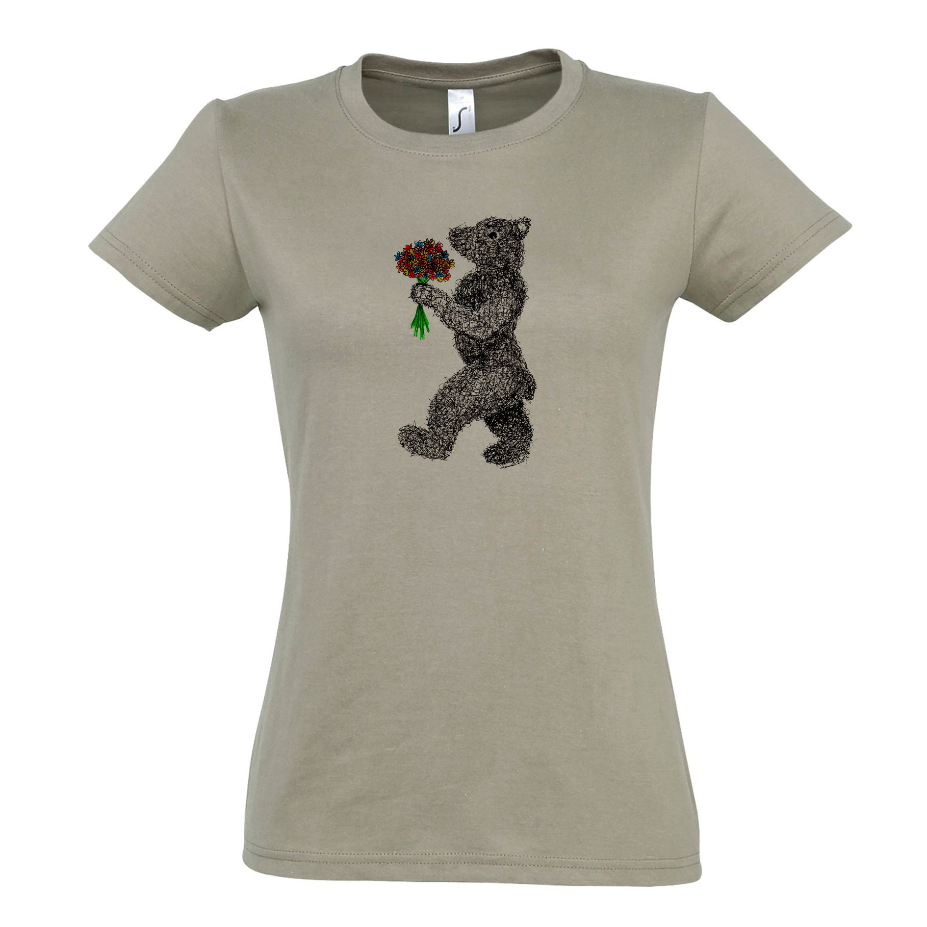 FairWear Damen T-Shirt 'Blumen - Bär' gezeichnet Baumwolle