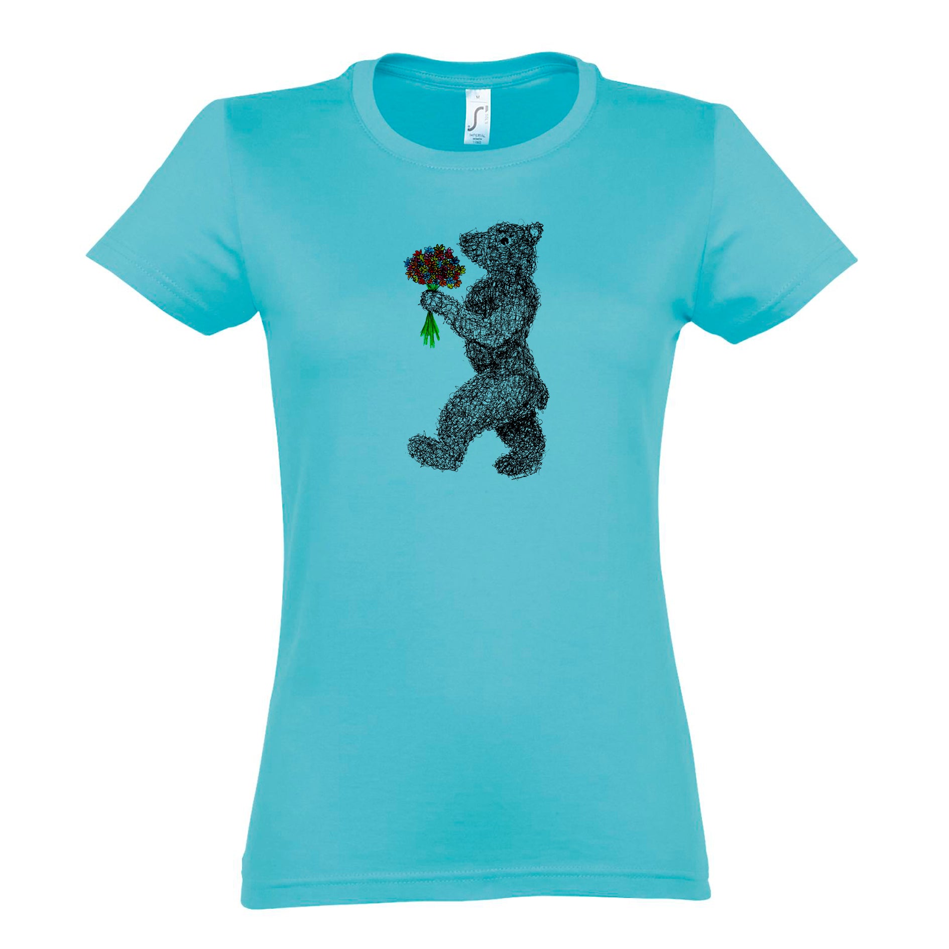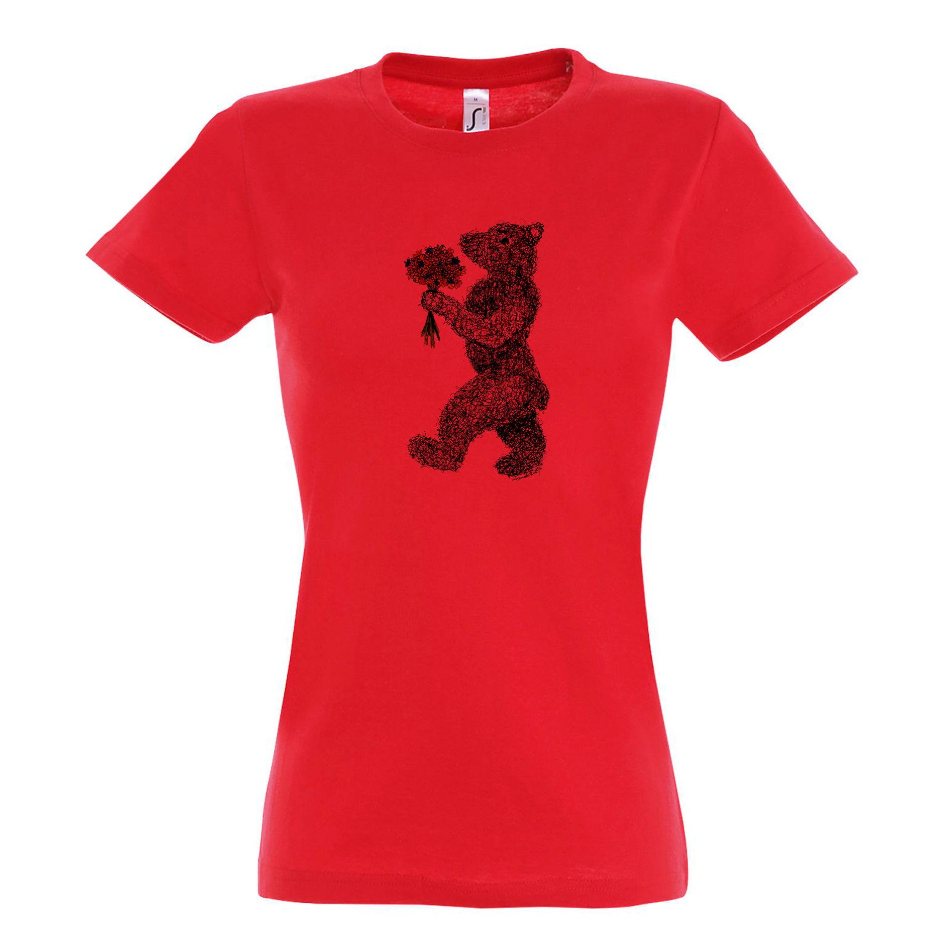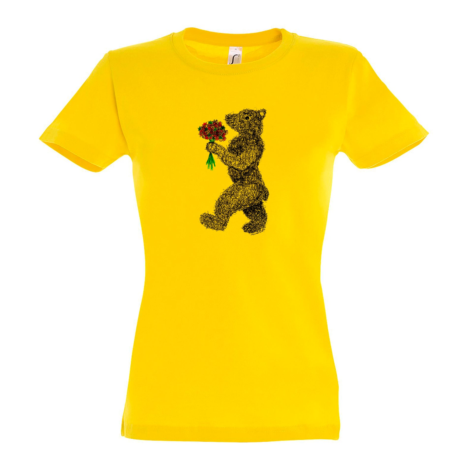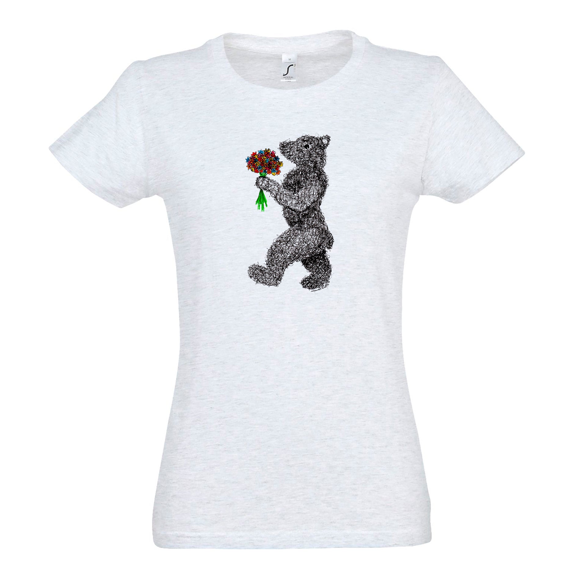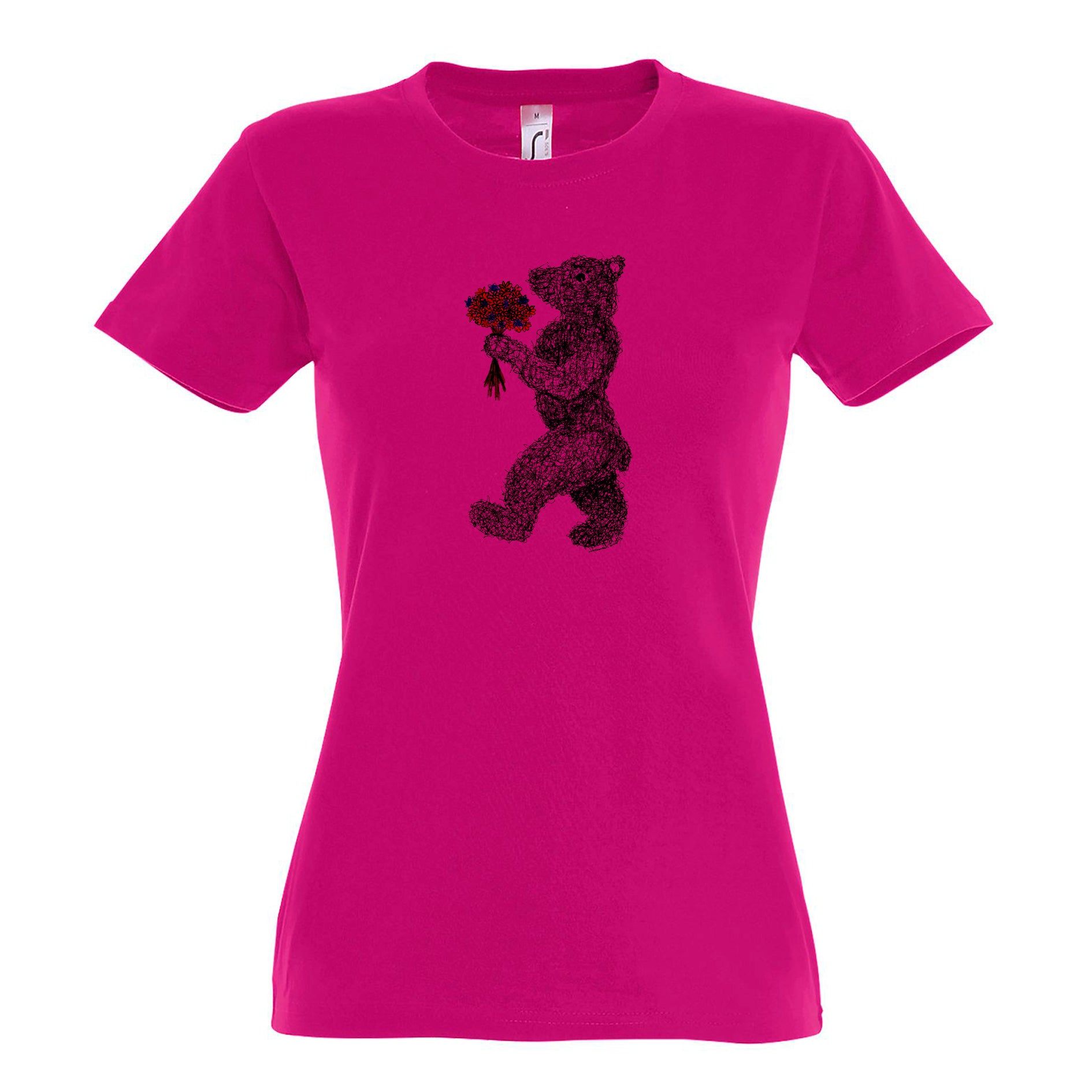 FairWear Damen T-Shirt 'Blumen - Bär' gezeichnet Baumwolle
